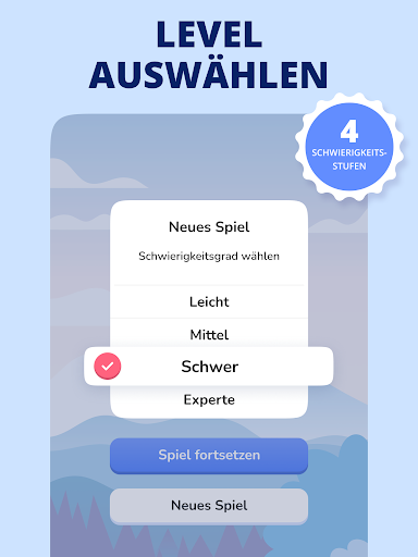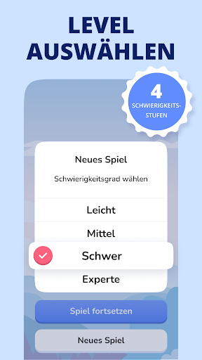 Wähle das gewünschte Level und verbessere deine Fähigkeiten. Mach es zum Kinderspiel oder denke scharf nach. Entspann dich und lass dich mit den leichten Levels von der Hektik des Alltags ablenken. Wähle ein schwierigeres Level und trainiere das Lösen von logischen Aufgaben.