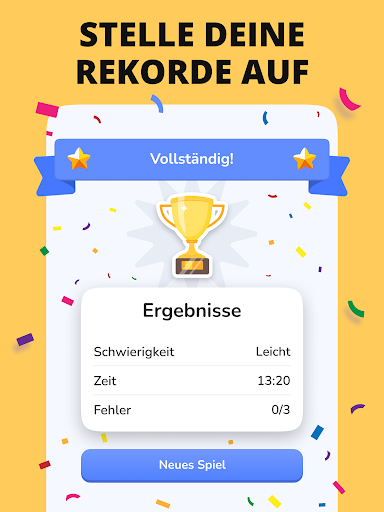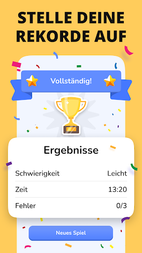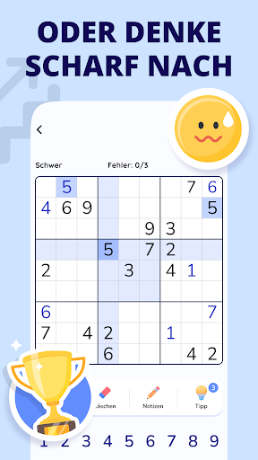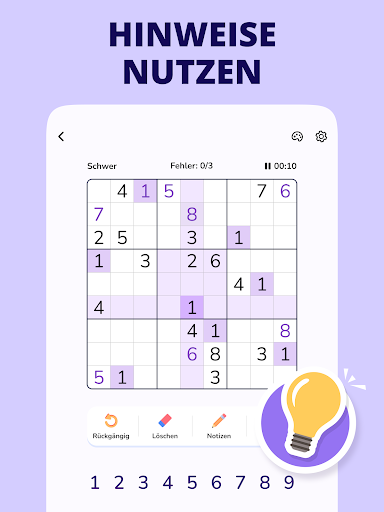 Nutze Tipps, wenn du Hilfe brauchst – werde ein echter Sudoku-Profi. Stelle neue Rekorde auf und tritt gegen deine Freunde an. Vergleicht die Zeit, die ihr gebraucht habt, und die Anzahl der Fehler. Werde der Beste!