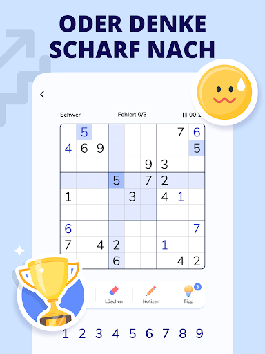 Genieße das übersichtliche Design und die kontrastreichen Farben. Dies ist dein Sudoku Puzzle kostenlos – du kennst es aus der Time Killer, und jetzt auf dem Smartphone oder Tablet. Spiele und vergiss den Stress.
