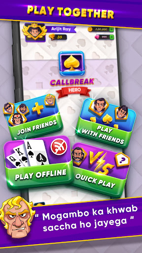 Callbreak Held ist ein strategisches Trick-basiertes klassisches Kartenspiel mit der Twist of Bollywood-Funktion.