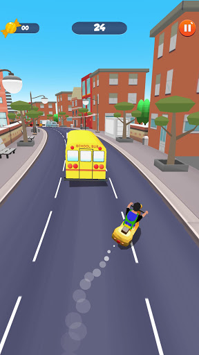 Surfen Sie mit dem Skateboard wie ein Profi-Surfer, während Sie dem Bus nachjagen und den Hindernissen ausweichen. Sammle unterwegs Süßigkeiten und schalte neue Fahrzeuge frei.