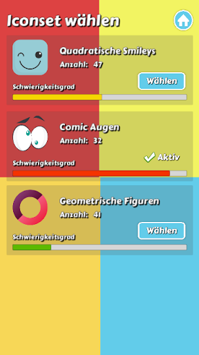In Swipe hast du nun auch die Möglichkeit verschiedene Grafik-Sets zu benutzen, um den Schwierigkeitsgrad individuell anzupassen. Spiele mit den geometrischen Figuren, den quadratischen Smileys oder den Comic Augen.