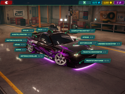 ● Stöbere in einem umfangreichen Katalog mit einzigartigen Modifikationen, darunter Felgen, Stoßstangen, Seitenschweller, komplette Bodykits, Spoiler, Motorhauben und vieles mehr.