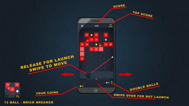 12 Ball - Brick Breaker is a game where you have to survive as long as possible, each block destroyed is worth a point, each end throw the bricks down a position and acquire a life span.