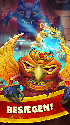 Beschwöre Supermonster, indem du den göttlichen Zauber der Pyramide anwendest. Kreuze deine Monster und entsende sie in PvP Schlachten und Kämpfe gegen Bosse. Herrsche wie ein König über deine Armee!
