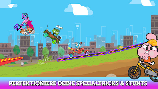 In diesem einfachen, rasanten Kopf-an-Kopf-Rennen fährst du mit deinem Fahrrad über Rennstrecken, die mit Spaß nur so vollgepackt sind. Ganz egal, ob du es liebst, Stunts zu machen, auf einem Rad zu fahren, auf einem Dirt Bike zu sitzen, Stoppies zu vollführen oder einfach nur den Nervenkitzel der Geschwindigkeit genießt, in BMX Champions kannst du in einer wilden Hindernisfahrt deine besten Fähigkeiten zeigen. Du spielst als deine Lieblingsfigur von Cartoon Network. Spring auf dein selbsgebautes Fahrrad und trete gegen die anderen Figuren von Cartoon Network an. Auf dieser verrückten Rennstrecke musst du Gas geben, balancieren und bis zur Ziellinie durchpowern!