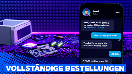 In unserem Idle Tycoon Spiel kannst du den PC deiner Träume bauen. Im Shop können Sie ein Motherboard, einen Prozessor, eine Grafikkarte und andere Teile auswählen und kaufen. Dann installieren Sie das Betriebssystem, Treiber, Lieblingsprogramme und Spiele und all das kannst du in einer einzigen App auf deinem Smartphone erledigen.