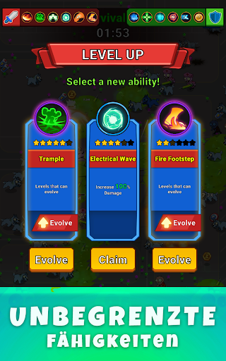 Es stehen viele Charaktere mit unterschiedlichen Fähigkeiten und Kräften zur Auswahl. Wähle deinen Lieblingscharakter, der dich in vielen bevorstehenden Überlebenskämpfen begleitet.
