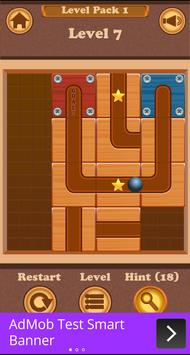The goal of game is to roll the ball out of the puzzle game board by sliding the other blocks out of its way. Get the ball to the red wood block.