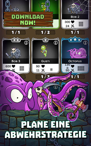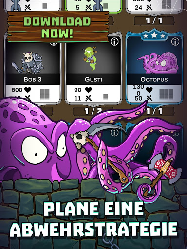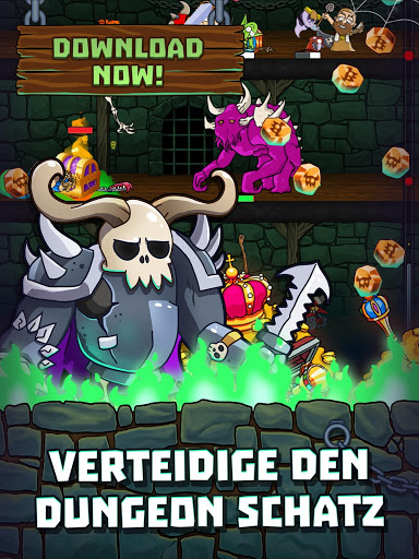 Idle Dungeon Heroes ist ähnlich aufgebaut wie Tower Defense Spiele, nur eben unterirdisch und mit zahlreichen Spezial-Features. Neue Monster für die Verteidigung bekommst du über Booster in diesem Actionspiel. Erweitere dein Dungeon, indem du es immer tiefer gräbst – so hast du mehr Platz für weitere Monster und Fallen.