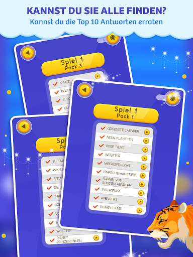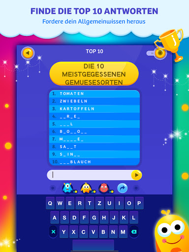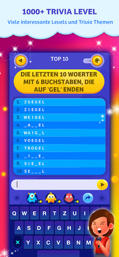 Es gibt eine Vielzahl lustiger, interessanter und herausfordernder Themen mit über 1000 Levels, um dein Wissen zu testen. Kannst du alle Antworten für die Top-10-Listen finden? Joker helfen dir, das Rätsel zu lösen, wenn du nicht weiterkommst: Verwende sie um 5 Buchstaben, 10 Buchstaben oder die gesamte Antwort anzuzeigen. Wissenswertes, das dich stundenlang unterhalten wird!