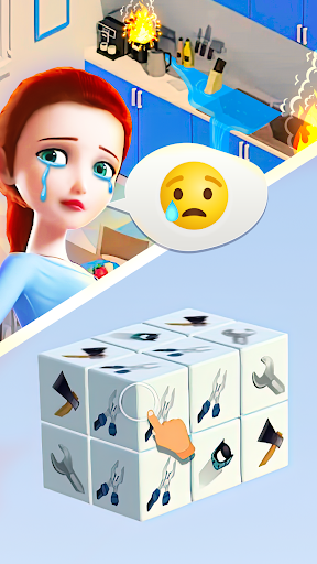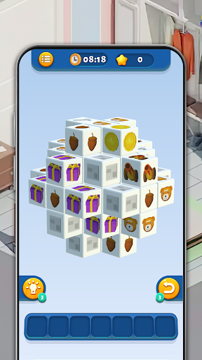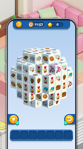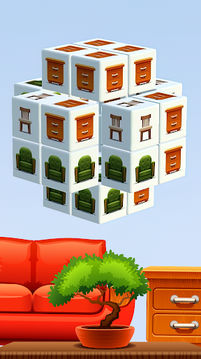 Cube Decor 3D - Match 3D Game.swipe, um den Cube zu drehen und identische Fliesen aufzunehmen, um das Niveau zu löschen und Stromstützen zu verwenden, um Ihnen dabei, alle Fliesen noch schneller zu löschen.Verdienen Sie Starts und dekorieren Sie Ihr Haus!