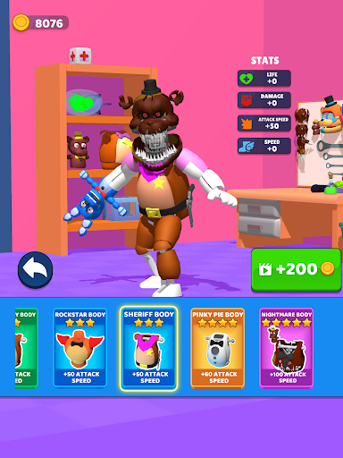 Finde und erledige alle Feinde in einem Level, aber sei auf der Hut - wird dein aminatronisches Monster in der Lage sein, mächtige Bosse der Polizeieinheit zu töten? Das sind deine eigenen Jagdgründe, in denen du alles im Level zerstören kannst. Zertrümmere Wände, sammle Münzen, kaufe neue Körperteile und füge sie zusammen, um unglaubliche animatronische Monster zu erschaffen, die deine Feinde in Stücke schneiden!