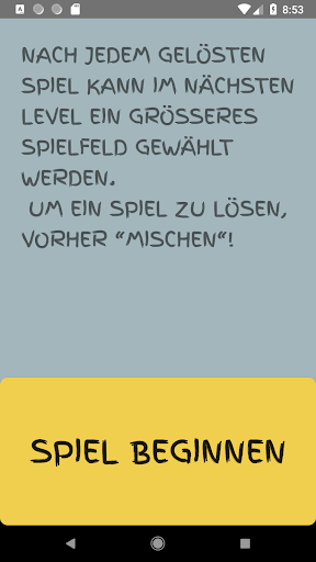 Das klassische Schiebespiel, Schiebepuzzle. Keine überflüssigen Funktionen, die vom Spiel ablenken. Dafür ist die Anzahl von Spalten und Zeilen unbegrenzt. Jedesmal wenn ein Puzzle gelöst wurde, kann das nächste "Level" mit einer Zeile und Spalte mehr gespielt werden! Bevor ein Puzzle gelöst werden kann, muss man es natürlich vorher "MISCHEN".