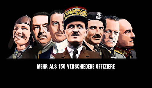 - Mehr als 150 einzigartige Offiziere die im Kampf Deine Einheiten unterstützen können