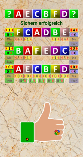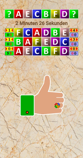 Finde eine gegebene zufällige Reihenfolge von Buchstaben bzw. Farben innerhalb eines Minimums an Versuchen und Zeitaufwand.