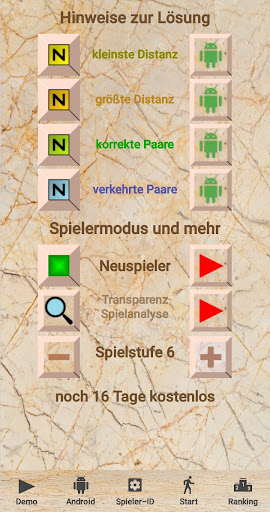 Diese Series-Version auf Android bietet sehr komfortable Funktionalität (Neuspieler- und Profi-Modus, Transparenzoption, Hinweisauswahl, Versuche vorab prüfen, Prüfergebnisse optisch anzeigen, dynamische Anzeige der Summe aller Abstände bezüglich letztem Versuch, Simulationen, Demos, Rangfolgen) und ist daher besonders auch für Kinder sehr geeignet.