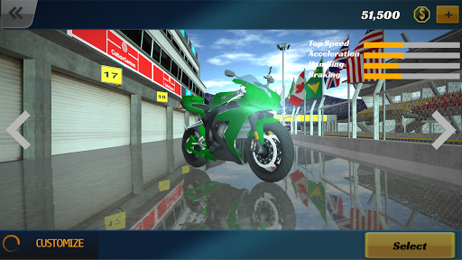 Ride in the most spectacular environment built just for performing the craziest race. The Physics are realistic and you get to choose your motorbike