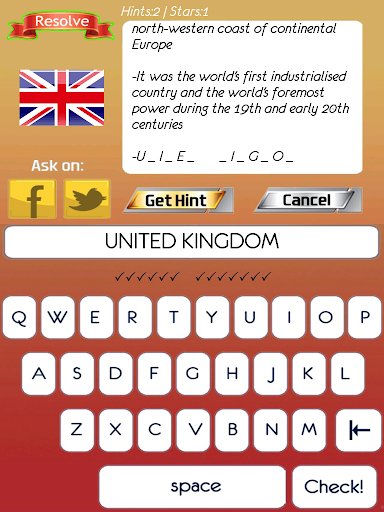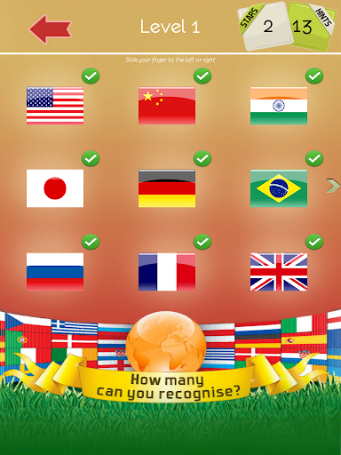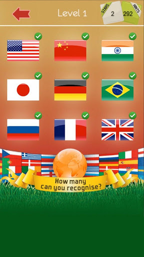 On every 3 guesses, you will earn one hint and on every 10 guesses, you will earn one star that can be used to open a country that you couldn't guess.