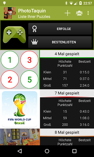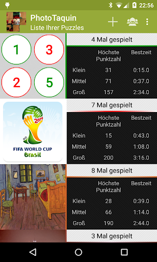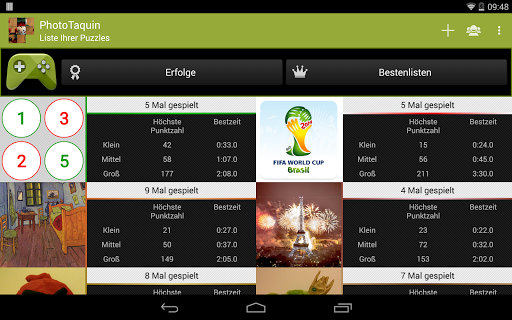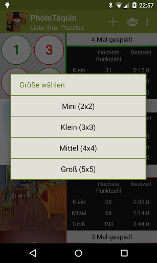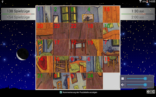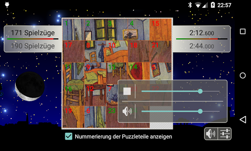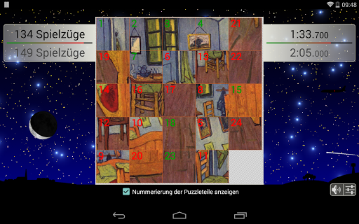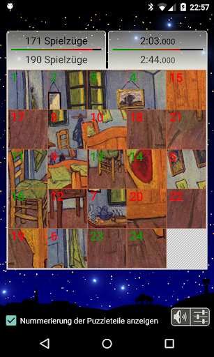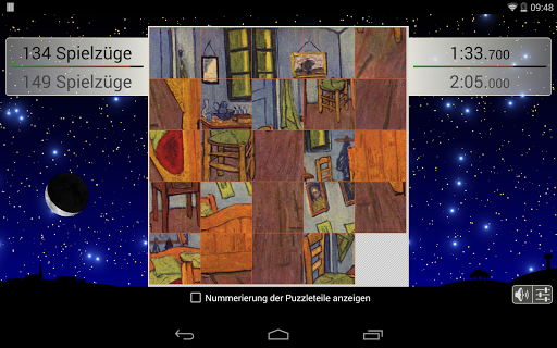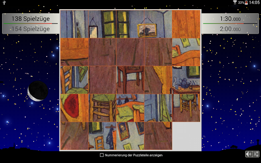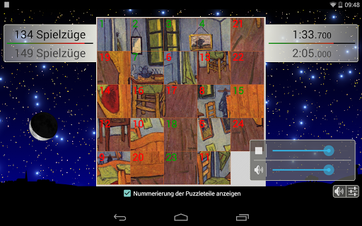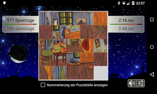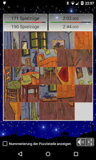 Die Anzahl der Spielzüge und die Zeit werden gezählt! Die besten Ergebnisse werden für jedes Puzzle und jede Größe gespeichert (außer bei Größe Mini für Kleinkinder!)