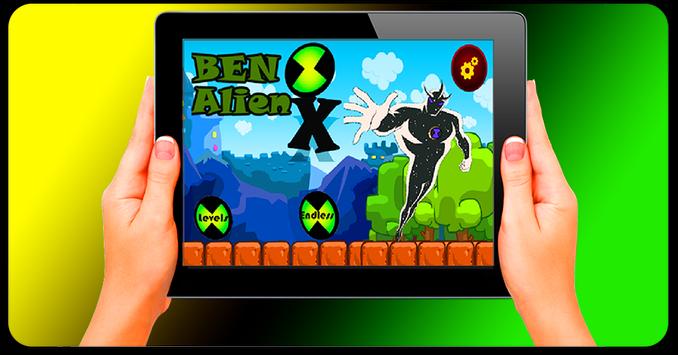 Hello ben10 fans , welcom to the best game "Ben10 Alien X" of all the ben's collection . Alien X want to collect all the green diamonds and also want to open all the secret levels to get at endless world, use your fingers to jump and slide and don't let the bad aliens kill you . Enjoy your game "Ben10 Alien X" and rate us.