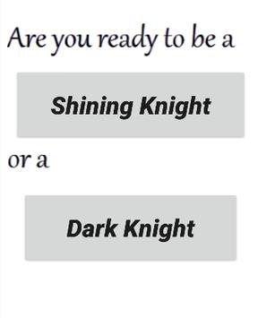 This challenge game is to test yourself is totally Good person or Evil person. If you not Good or Evil enough. Please do not accept this challenge. You 100% cannot pass this test. Inside the game got 2 directions Good or Evil. You have to choose one of them. Every direction got own random question set to test yours Good and Evil heart. If you not Good or Evil enough, you cannot score the mark and will fail.