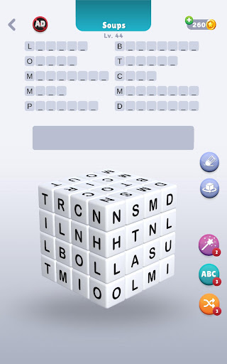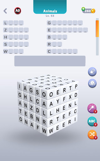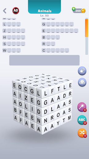 Die Themen in den Levels, die Sie spielen, werden Sie für die Wörter inspirieren, die Sie finden müssen.Wenn Sie stecken bleiben, können Sie außerdem die ersten Buchstaben aller Wörter erreichen, die Sie in der Wortliste erstellen müssen.Wenn Sie es schwieriger machen, verwenden Sie Ihre Wildcards.