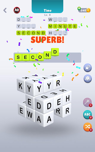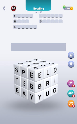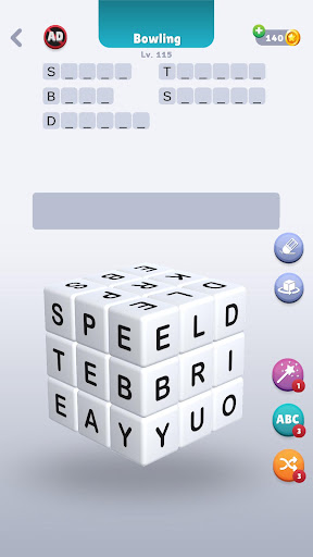 Finden Sie die Wörter mit den Buchstaben im Würfel.Sie werden alle Buchstaben reinigen, wenn Sie die richtigen Wörter entdecken, die auf dem großen Würfel verborgen sind.