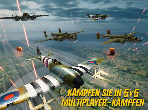 Fliege dein Flugzeug und kämpfe im 5v5-2. WK-Luftkampf! Pilot eines Bombers oder eines Kampffliegers zu sein, ist kein Kinderspiel. Vergiss nicht, dass diese Flieger nicht mit modernen Jets vergleichbar sind! Du musst dein Flugzeug anpassen und aufrüsten, um der beste Pilot in allen 2.-WK-Spielen und ein Champion der Flugsimulationsspiele zu werden! Fliege mit deinem Geschwader und verteidige seine Flugzeuge. Setze deine Flugsimulator-Fähigkeiten ein und beobachte die Umgebung. Erfülle verschiedene Luftkampfmissionen und nutze die Kraft deiner 2.-WK-Flugzeuge! Das ist die epischste Luftschlacht in Flugzeugspielen überhaupt.