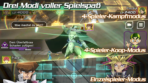 Neben dem 4-Spieler-Match-Modus kannst du im Einzelspieler-Modus mit Charakteren aus der Yu-Gi-Oh!-Serie zusammenspielen oder dich im 4-Spieler-Koop-Modus mit anderen Duellanten zusammenschließen, um es mit einem furchterregenden Überfallboss aufzunehmen!