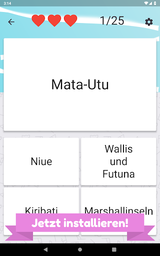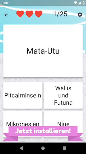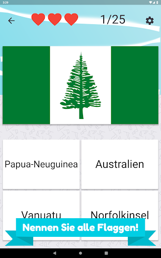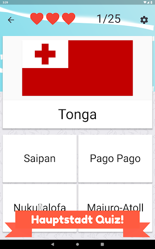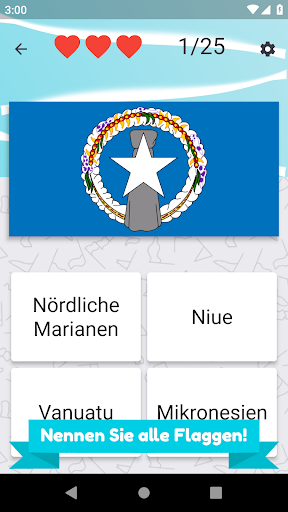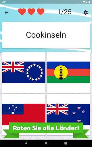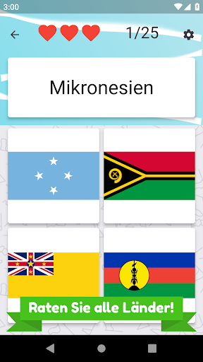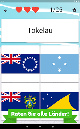 Nennen Sie alle Länder in Ozeanien und wählen Sie die richtige Flagge. Es gibt 25 verschiedene Inselstaaten und Flaggen zu erraten.