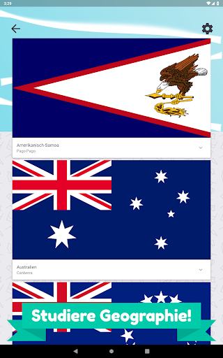 Studieren Sie Ozeanien und Australien Geographie und bereiten Sie sich mit unserer "Ozeanien und Australien Quiz - Länder und Flaggen" App auf Prüfungen und Schultest vor. Hunderte von Fragen zum Testen!