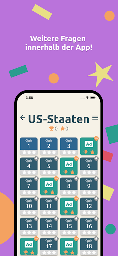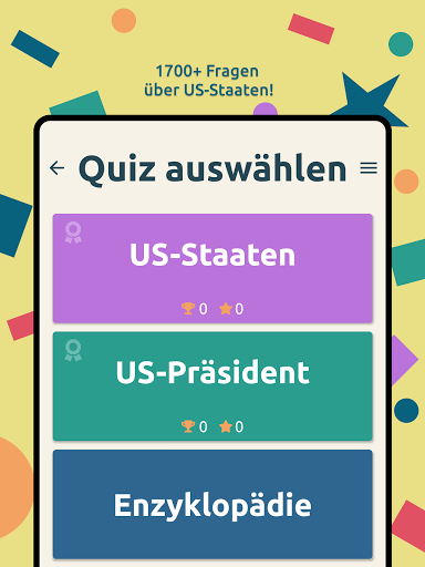 Ein kleines bisschen Herausforderung macht alles besser! In U.S. States & Presidents Quiz 2.0 bieten wir Ihnen eine faire Herausforderung: Die Quizze am Anfang sind schnell und einfach, aber mit jedem abgeschlossenen Quiz wird ein neues, schwierigeres Quiz freigeschaltet. Wir fordern Sie heraus, sie alle zu lösen!