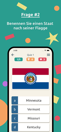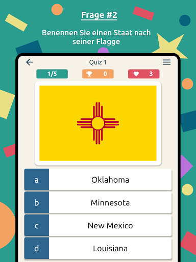Unser Quiz ist eine hervorragende App, um das Wissen über die Geographie der US-Bundesstaaten und die Präsidenten zu testen.