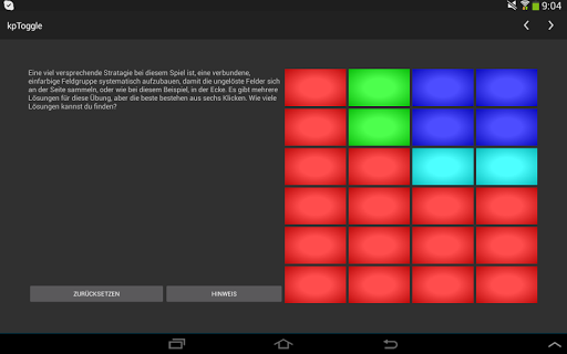 Kannst du es schaffen, anhand nur einer einfachen Interaktion alle Felder gleichfarbig zu machen? Du bestimmst die Komplexität des Spieles sowie die Größe des Brettes, damit ein Spiel nur ein paar Sekunden oder vielleicht ein paar Stunden dauert.