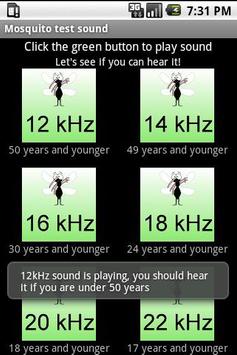 Mosquito Testton Anwendung zu testen, wenn du kannst hohen frequecy hören Klänge nach Ihrem Alter.