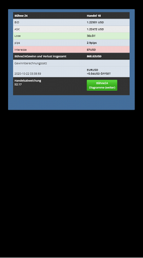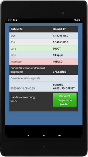 Das Spiel ist voll von Spielelementen wie Abweichungswerten für jeden Handel, Ranglisten für jede Stufe sowie eine Übersichtsanzeige von Kerzencharts von 1 Minute bis 4 Stunden, Bollinger Bands, EMA exponentiell gleitende Durchschnitte, Volumen, schnelle Stochastik, RSI und mehr.