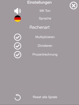 Mit dem Mathe Master verbesserst du deine Fähigkeiten im Kopfrechnen. Du kannst mit der Addition (+) oder Subtraktion (-) anfangen; im „Schüler“ Spiel liegen alle Antworten im Zahlenbereich unter 100. Später kannst du Multiplikation (x), Division (./.) und sogar Prozentrechnung (%) dazu nehmen.