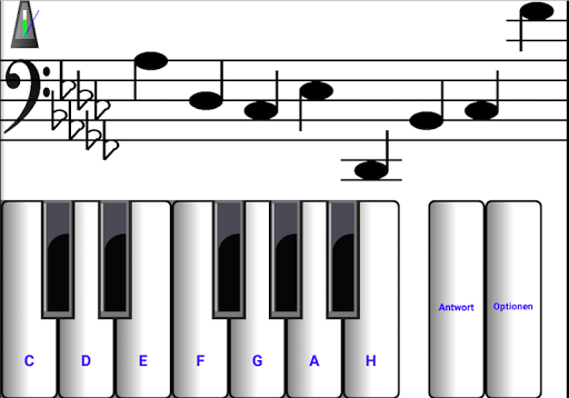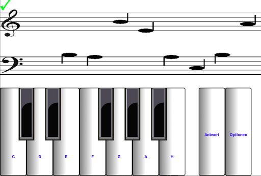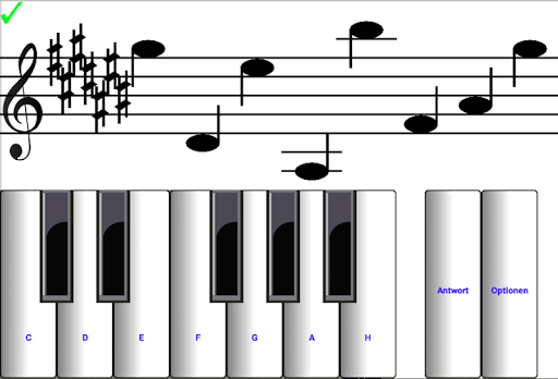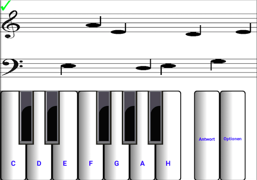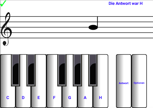 Augen Noten lesen Noten. Lernen, Noten zu lesen. Augen zu lesen in G-Schlüssel und F-Schlüssel. Noten oberhalb und unterhalb liniensystem. Überspannen sechs Oktaven. Gilt für jedes Instrument. Noten nach dem Zufallsprinzip generiert und nicht zu einer sich wiederholende Reihe erzeugten. Austausch zwischen dem G-Schlüssel und F-Schlüssel für mehr Spaß. Antworten für Anfänger. Anfänger das Tempo, indem die Oktave Abschnitt erfahren. Dur und Moll (-is und -es). Piano Klang stummgeschaltet werden. Gehören Test-Ergebnis und Performance-Statistiken. Ideal für Handys. Perfekt für Tablets.