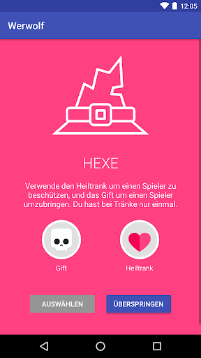 Werwolf ist ein tolles Spiel, macht aber nicht so viel Spaß ohne Karten. Diese App ist ein kompletter Kartensatz für Werwolf. Einfach die gewünschte Spieleranzahl und Rollen aussuchen (Werwölfen, Dorfbewohnern, Hexe, etc.) und anschließend das Handy der Reihe nach herumreichen. Jeder Spieler kann seine Rolle inklusive Beschreibung ansehen.