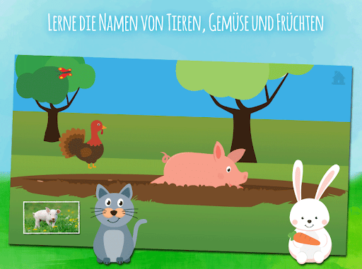 ★ Im Spiel können die Kinder Fotos von Tieren, Gemüse oder Früchten sehen.