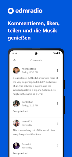 Unsere App ist immer auf dem neuesten Stand mit neuen Streams von verschiedenen DJs, Soundproduzenten und Radiosendern. Sie können schnell Ihren Kommentar zum Song posten oder mit anderen Hörern darüber mischen und chatten oder sogar ein Gespräch mit dem Stream-Besitzer führen.