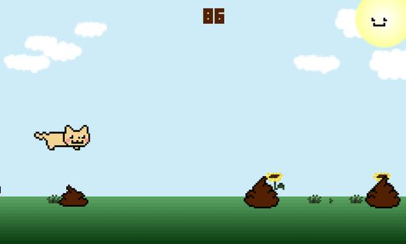 - run as far as possible - tap the screen to jump over the poo - hold to jump higher - challenge your friends - collect ball of yarn to get bonus score - have fun ;)