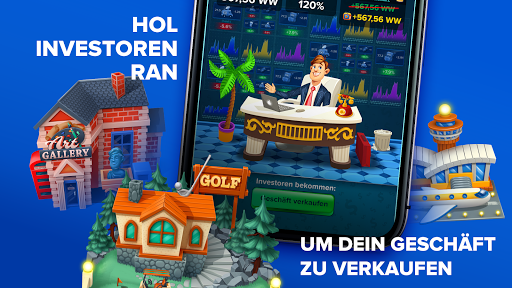 Hole die Investoren auf deine Seite, stelle Geschäftsführer ein und kaufe Verbesserungen für dein Business. Schau zu wie dein Einkommen wächst!