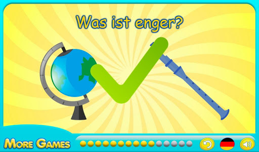 Wir bieten an, in die Ausbildenden Spiele zu spielen: eng breit und den Kleinen mit den Eigenschaften der Gegenstände bekannt zumachen. Im Spiel wird das Kind lernen, die Gegenstände auf breit und eng zu teilen. Am Bildschirm erscheint zwei Darstellungen, jener Gegenstand, der die Breite geringer eng - haben bin weniger. So kann der Kleine lernen, auf die einfachen Fragen zu antworten: was schon, was breiter sind.