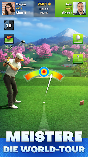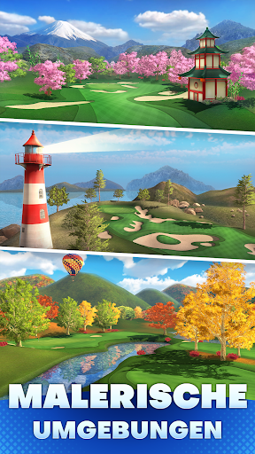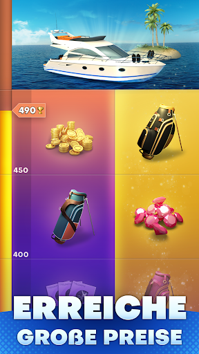 Entdecke all die fantastischen Kurse und probiere sie aus! Tritt an, gewinne Münzen und Edelsteine, um Truhen freizuschalten, sammle legendäre Schläger, konfiguriere deinen Golfer und meistere die World-Tour.