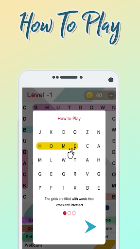 1-Swipe your finger horizontally, vertically, diagonally, forwards or backwards to find the specific hidden words in mixing letters.