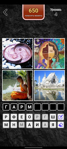 Intuition entwickeln und logisch die Wörter erraten, die im Spiel verborgen sind.Es gibt 4 Fotos vor sich, sie haben etwas gemeinsam, Ihre Aufgabe ist es, genau zu verstehen, was genau!Wenn Sie die Aufgabe verwalten, erhalten Sie einen Gewinn aus dem Spiel, nämlich, Sie können sich Ihrer Freunde rühmen, was für gut aussehend Sie sind!