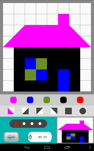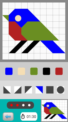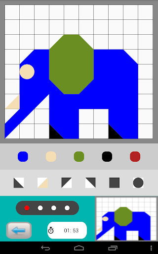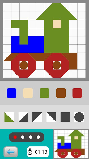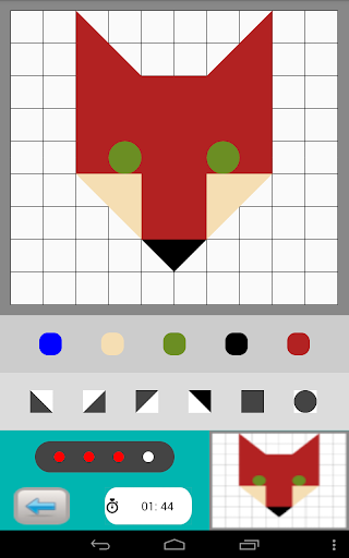 Generally we draw with a pencil by hand drawing lines with free curvature. This game shows that with simple shapes: square, circle, triangles and a grid we can draw beautiful pictures.
