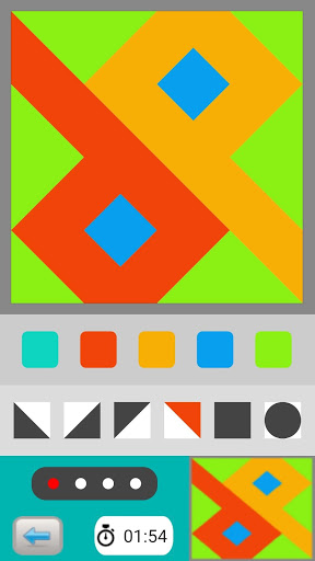 Draw Geometrically is designed for young teenagers as well as adults. This requires a minimum of concentration and allows young people to develop both their faculties of geometric observation and their artistic sense (harmony of shapes and colors).